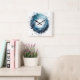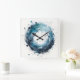 abstract ring in watercolor style, wheel spot, dark blue and teal color tones, wall clock, free hand pattern,