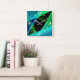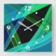 Horloge Carrée Abstrait, géométrique, vert, bleu, noir