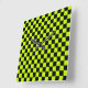 Horloge Carrée Acid green black checkerboard pattern