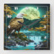 Horloge Carrée Aigle Perché Près De La Cascade Sous Pleine lune