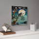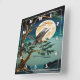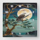 Horloge Carrée Aigle perché sur arbre sous la Pleine lune nuit