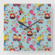 Horloge Carrée Alice Wonderland Chapelier Fou Chat Doodle Art par