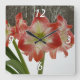 Horloge Carrée Amaryllis en Fête Rouge Neige Hiver Floral
