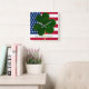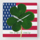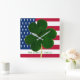 Drapeau américain Shamrock irlandais Clover St. Patrick's Day Décor mur Les immigrants irlandais Horloge avec la typographie verte Texte : La famille O'Neill, vous pouvez changer tout le texte