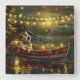 Jetez un coup d'oeil à la magie de la saison des Fêtes avec cette illustration magnifiquement détaillée, montrant un chien fier assis dans un bateau à la décoration festive, glissant à travers un lac serein de Noël. Les lumières scintillantes des pins voisins se reflètent dans l'eau, projetant une lumière chaude et festive qui renforce l'ambiance cosy. Des ornements pendent des côtés du bateau, tandis que des lanternes brillantes éclairent le chemin, créant une scène qui capture l'essence véritable de la chaleur et de la joie de Noël. Cette oeuvre nostalgique apporte une touche de magie de vacances à tout espace, parfait pour ceux qui chérissent l'esprit de la saison.