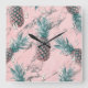 Horloge Carrée Ananas & marbre rose Swirl moderne Tropical Chic