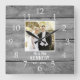Horloge anniversaire unique à personnaliser avec photo de couple, nom et année établie. L'horloge mariage rustique avec un effet en bois de grange fait un grand cadeau pour les mariages, anniversaires, et nouveau ménage maison.