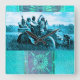 Photography of great Native American Apache warrior chief Geronimo with top hat ,driving an elegant vintage car in aqua blue ,teal.turquase colors, taken on June 11, 1905 , re-elaborated by Bulgan Lumini. inside of the card ,magic symbol of sacred Morning Star of Pawnee tribe bearer of well-being .