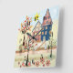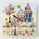 Applique, maisons, village, patchwork, courtepointe, volets, couture, peinture, arbres, nature, plaid, ferme, vintage, rétro