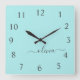 Horloge Carrée Aqua Blue Script Turquoise Monogramme Nom de la fi