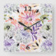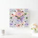 Horloge Carrée Aquarelle blanche, fleurs roses