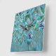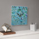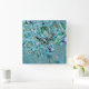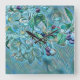 Horloge Carrée Aquarelle blanche moderne bleu vert cerisier