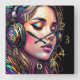 Horloge Carrée Aquarelle en verre tendu Fille portant un casque