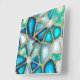 Horloge Carrée Aquarelle et cellules d'or - océan