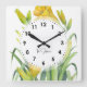 Horloge Carrée Aquarelle Jaune Lys Fleur Illustration