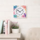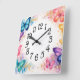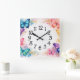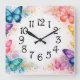 Horloge Carrée Aquarelle Papillon Splash et Fille Pailletée