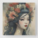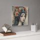 Horloge Carrée Aquarelle Peinture Belle Asiatique Fleurs Femme