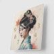 Horloge Carrée Aquarelle Peinture Belle Asiatique Fleurs Femme