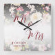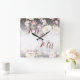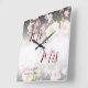 Horloge Carrée Aquarelle rose Roses jaunes, noir flou, Mariage