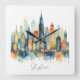 Horloge Carrée Aquarelle Ville Skyline Cool moderne Urban Graphis