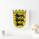 Les armoiries du Bade-Wurtemberg sont ornées d'un bouclier avec trois lions noirs sur un arrière - plan doré, représentant l'ancien duché de Swabia. Ce bouclier est surmonté d'une couronne stylisée symbolisant la souveraineté du peuple après l'abolition de la monarchie. Les armes de moindre importance sont utilisées par les autorités de l'Etat et les notaires fonctionnaires qui n'utilisent pas les grandes armoiries.
