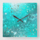 Horloge Carrée Arrière - plan à huile Turquoise de la menthe