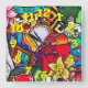 Horloge Carrée Arrière - plan de graffitis avec numéros de graffi