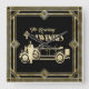 Art déco noir et or, image rugissante des années 1920 d'un homme en costume à côté d'une voiture antique.