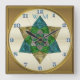 Horloge Carrée Art Deco Peacock Feather Inspecred Mandala Monogra