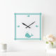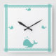 Horloge Carrée Artic teal Blue Whale Stripe coastal Nautical