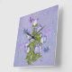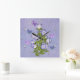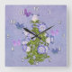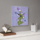 Quatre Colorful butterflies in hues of blue, purple, and pink, hover around a bouquet of purple and white bell shaped flowers. The background is a mingled medium blue. The leaves around the flowers are a vivid green. Customize the product by adding your own caption, nom, or monogram The flowers are modification from Za Za Scrap and Tubes and the butterflies from Pats Floral and Fauna, both from Digital Scrap Designs.