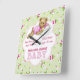 Design personnalisé doux en vert tendre et rose avec étoiles, biberons et tenues pour bébé. Bébé ours en peluche posé sur un coussin. Le texte de la zone ci-dessous vous permet de customiser avec le nom et la date de naissance. Le bas de la bannière a Welcome Sweet Baby texte art.