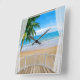 Le temps ne passe pas lorsque l'on profite chaque jour de la vue d'un balcon avec vue sur la mer. Grâce à PEXELS pour l'utilisation commerciale gratuite de photos d'un palmier et d'une scène océanique, Holbrook Art a utilisé des techniques de peinture à l'huile numérique pour les modifier et peint voir à travers des rideaux et un balcon pour créer une vue réaliste de face de la plage et de l'océan comme vu depuis une chambre de resort.