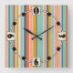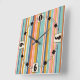 Horloge Carrée Bandes verticales rétrospectives bleu orange et ja