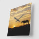Horloge Carrée Beau cheval dans l'horloge du coucher du soleil