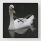 This awesome clock feh a photograph of a beautiful white swan. Le swan is a male a mute swan, you can tell it is male by the black bump on the beak. The swan is gliding gracefully across the water on a calm lake.