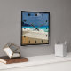 Une horloge avec une belle photo représentant une mer bleu turquoise et une plage de sable avec des vagues de surf mousseux.