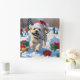 Horloge Carrée Bichon Frise Noël Festive Scène de neige