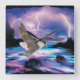 This a Unique One of a Child Fast Eagle Wall Clock ! It Feesta Majestic Bald Eagle Soaring Over a Pink and Blue Moonlit River During a Lightning Storm on a Moonlit night!!!!! Original Fine Art Eagle Painting by Artist Kerry Miller.