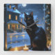 Horloge Carrée Black Cat With Christmas Lights Holiday