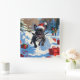 Horloge Carrée Black French Bulldog Festive de Noël Scène de neig