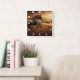 Horloge Carrée Black Horse Galloping dans les champs d'or