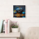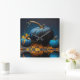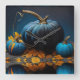Horloge Carrée Bleu Lune Citrouilles Feuilles d'automne