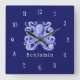 Horloge Carrée Bleu Octopus Plage Côtière Nautique Nom de la mais