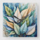 Horloge Carrée Bleu Vert or latte Feuille