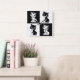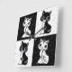 Horloge Carrée Bloc de monogramme noir blanc pour chat