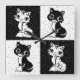 Monogramme À damiers noir et blanc illustration Kitty Chat Block Imprimer Motif Design