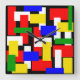 Horloge Carrée Blocs rouge, jaune, noir, bleu et vert