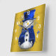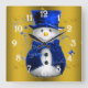 Horloge Carrée Blue Snowman sur Gold Christmas