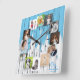 Horloge Carrée Bois de collage photo de famille